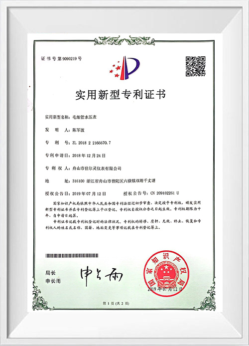 شهادة- Zhoushan Jiaerling Meter Co., Ltd.